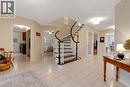 Nestled on a quiet crescent and backing onto a picturesque treed greenbelt, this stunning executive home offers the perfect blend of luxury, space, and family-friendly comfort—all while being located just 5 minutes from the Hwy 401 for an effortless commute. The home features a bright, open-concept main floor with a spacious foyer, sunlit living and dining areas, and a cozy family room with a gas fireplace. The large eat-in kitchen includes stainless steel appliances and walkout access to a private balcony overlooking a heated, kidney-shaped in-ground pool and serene green space. With a dedicated home office and a main-floor fifth bedroom or den, the layout offers ideal flexibility for guests or multi-generational families. Upstairs, the primary suite serves as a true retreat with two walk-in closets, a sitting area, and a spa-like 5-piece ensuite. Three additional generous bedrooms share a stylish 4-piece bathroom, all enhanced by new luxury vinyl plank flooring. The fully finished walkout basement offers incredible potential for an in-law suite or income-generating apartment, featuring large windows and a separate entrance, access to a stamped concrete patio and the pool, a family room with a three-way fireplace, a full bathroom, and rough-ins for a future kitchen. With 4+1 bedrooms, 4 bathrooms, and thoughtful living spaces throughout, this home is perfectly suited for multigenerational living. Whether enjoying morning coffee on the balcony or hosting summer pool parties, this is the lifestyle upgrade you've been waiting for. Don’t miss your chance to own this exceptional property. (id:7525)
