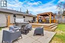 This exquisite West Galt raised bungalow is available right in time for back yard summer enjoyment! This large fenced yard has been lovingly cared for and designed. An amazing perennial garden is displayed on the slope with a babbling waterfall installed in '24. The sprawling deck, wooden gazebo, landscaping and hot tub was all completed in '21. In the front yard, all landscaping, arbour stone, the paved double-wide driveway, and the front entrance addition were completed in '21. Inside is a spacious front entrance leading to the living room, dining room and kitchen area. The living room includes an electric f/p and two sunny windows. The dining room offers a new patio door '17 leading to the deck. The kitchen was renovated in '17 and includes a centre island, quartz counter tops, two display cabinets with glass doors, under cabinet lighting and stainless steel appliances. Three bedrooms and a 4pc bath complete this level. The primary bedroom features an ensuite privilege and a step-in closet with organizers. All pot lighting and engineered flooring throughout the main level were completed in '17. The lower level includes an L-shaped family room renovated in '18 with luxury vinyl flooring and two large sunny windows, ready for all your family movie nights, and includes plumbing behind one wall for a future kitchen area if interested. A sunny bedroom with a large egress window and closet is perfect for teens or overnight guests. Adjacent is a 3pc bath with walk-in glass shower. The laundry room is bright and functional and renovated in '18. Other recent updates include the roof shingles '18. C/vac and accessories and the murphy bed are included. Hot tub is included. Don't miss out! This home has been impeccably kept and is only steps to St. Augustine School. Five minutes of countryside driving to the 401. (id:7525)