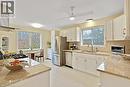 This beautiful raised bungalow is located in a highly regarded West Galt neighbourhood, in close proximity of Southwood Secondary School, shopping, and easy 401 access. The spacious living room and dining room both enjoy views to the front of the house, filtered by mature trees. The eat-in kitchen includes plenty of cabinetry with granite countertops and a tile backsplash, and the adjacent family room boasts hardwood flooring and a corner gas f/p. An all-season, heated sunroom with three skylights overhead and a ceramic floor will be a favourite space overlooking a cottage-like view of mature trees a lovely decorative garden shed and outdoor decking. Three bedrooms, a 4pc family bath, and a 3pc ensuite bath with tile and glass shower stall complete this floor. The lower level continues with plenty more living space, offering a sprawling recreation room with large sunny windows across the front. Another 3 pc bath on this level is perfect for any overnight guests. Mechanical updates include furnace and c/air (2 yr), chimney liner (11 yr), dryer and fridge (2yr), gas tove (10 yr), shingles (13 yr). Water softener owned. Water heater is a Reliance rental. (id:7525)
