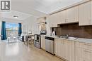 The ultimate Live-Work-Play-Learn space located in close proximity to two universities: UW and WLU, shopping, restaurants, transit stops. Perfect for students, investors or professionals. This fully furnished, move in ready, 1 bedroom and 1 full bathroom condo located on the Penthouse Level of the G building, steps away from the roof top terrace and across the road from WLU's Lazaridis School of Business & Economics. This beautiful owner occupied suite is lovingly maintained and offers a flexible closing date and guaranteed vacant possession is provided. Premier suite finishes and conveniences available here: laminate flooring, ceramic tile in bathroom, in suite laundry with stackable washer/dryer, granite counter tops in kitchen and bath, and views of an open balcony from the living room. This unit includes a six piece appliance package, Climate controlled interior with individual heating and cooling controls, 4pc bathroom. Unit comes complete with 1 double bed frame,1 mattress, 1 nightstands, 1 desk, 1 chair, 1 sofa, 1 coffee table, 1 TV stand and TV, bathroom storage cabinet, 1 dining table and 2 chairs. The collection of buildings at 275 Larch includes a Games Room, Theatre Room, Business Centre, Yoga Room, Fitness Room. Book a showing today! (id:7525)